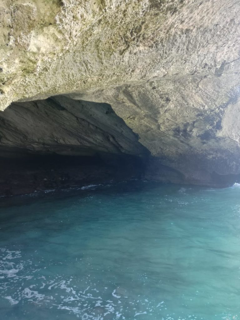 Es ist wunderschön so durch das Land zu fahren, denn die Landschaft in Südafrika ist sehr abwechslungsreich. Einmal lässt sich die Landschaft mit der schottischen Küste vergleichen und ein paar Kilometer weiter fährt man durch eine endlose Savanne. Wie ihr euch vorstellen könnt, konnte ich mich kaum satt sehen an dieser abwechslungsreichen Landschaft. Nach einigen Stunden Autofahrt sind wir am „Waenhuiskrans Cave“ angekommen. Das ist eine mystische Grotte am Küstenrand, in der Nähe von Arniston.